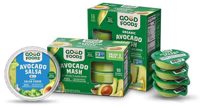 Perfectly portioned, perfectly ripe & ready to eat! 90 calories and easy for on the go! Our Avocado Mash is made with only 4 simple ingredients—Hass avocados, cracked black pepper, sea salt & lemon juice. Pack in lunches, or grab for snacking on the go for the easiest, most delicious avocado add on. We also use hand-scooped avocados in our Avocado Salsa for a bright & zesty mild salsa that delights with every bite!
