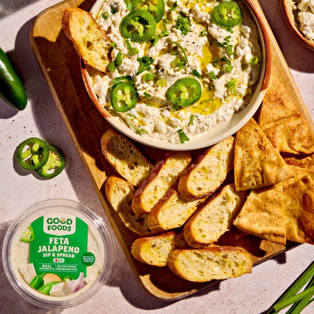 Our Feta Jalapeño Dip blends tangy, creamy feta with jalapeños, garlic, and herbs for a bold, zesty take on a Mediterranean classic. Rich and savory with just the right amount of heat, it delivers big flavor without overpowering the feta.